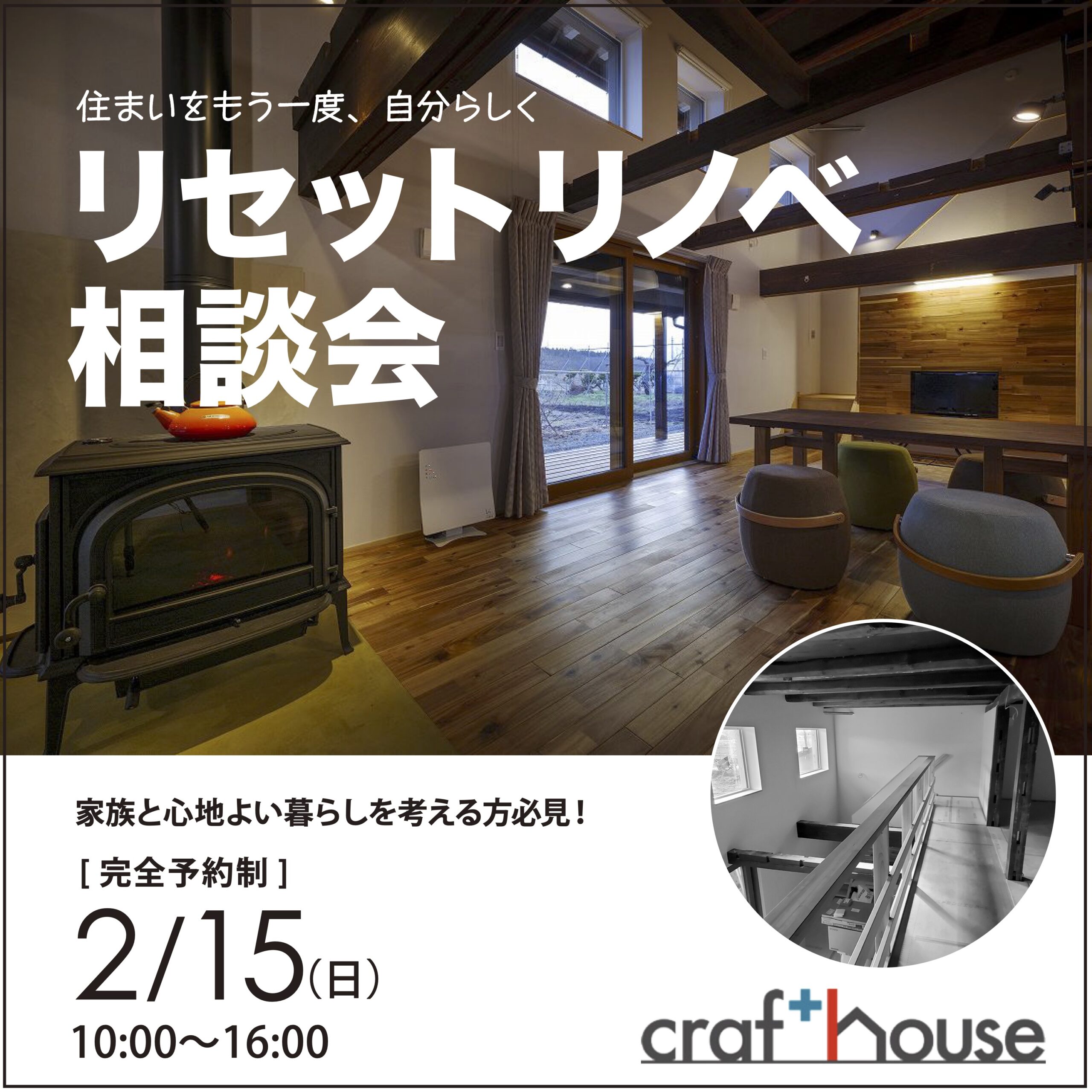 「リセットリノベ相談会」は完全予約制となっております。ご興味のある方は、こちらからご予約ください↓