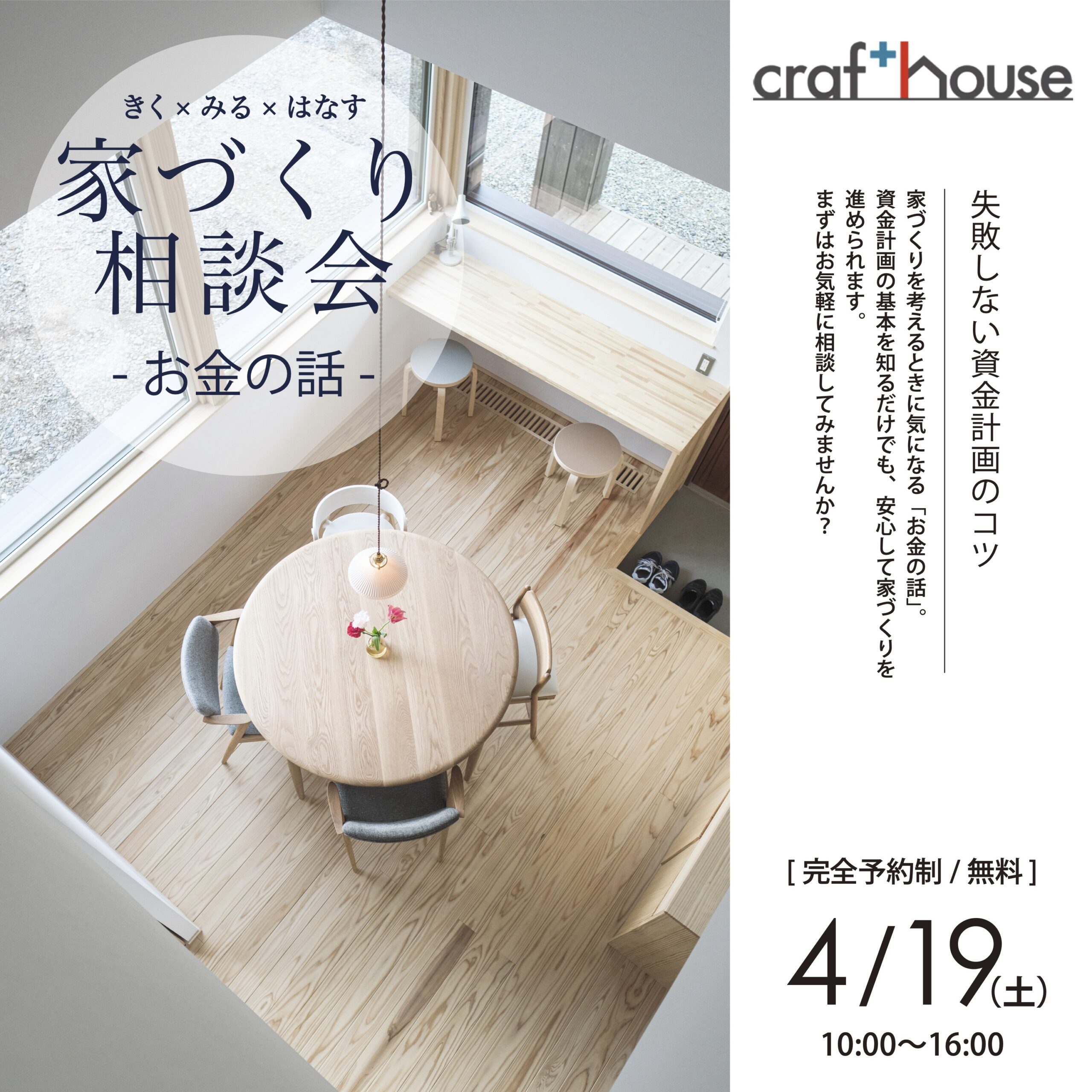 そこで、クラフト・ハウスでは家づくりを検討されている皆様に向けた【お金の相談会】を開催いたします!